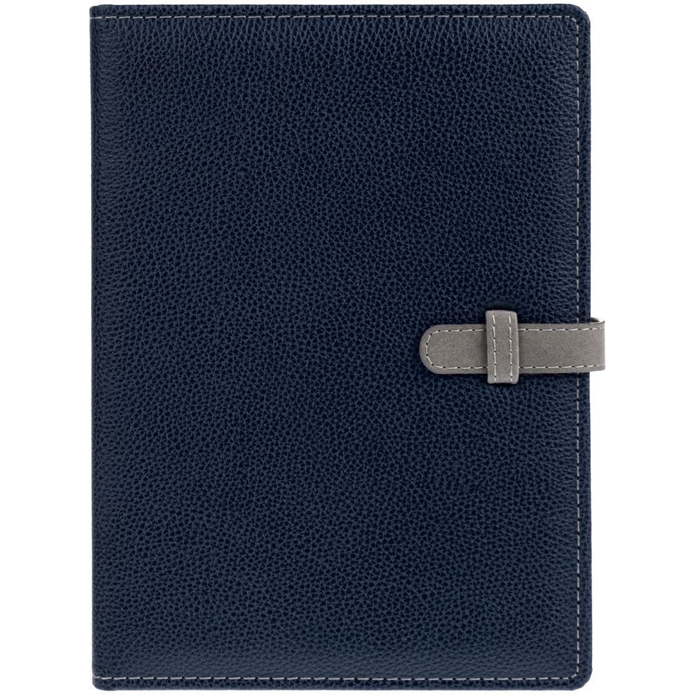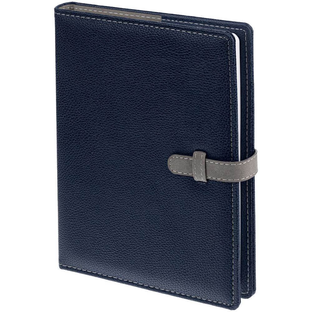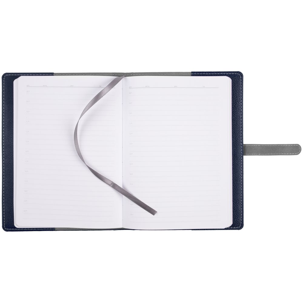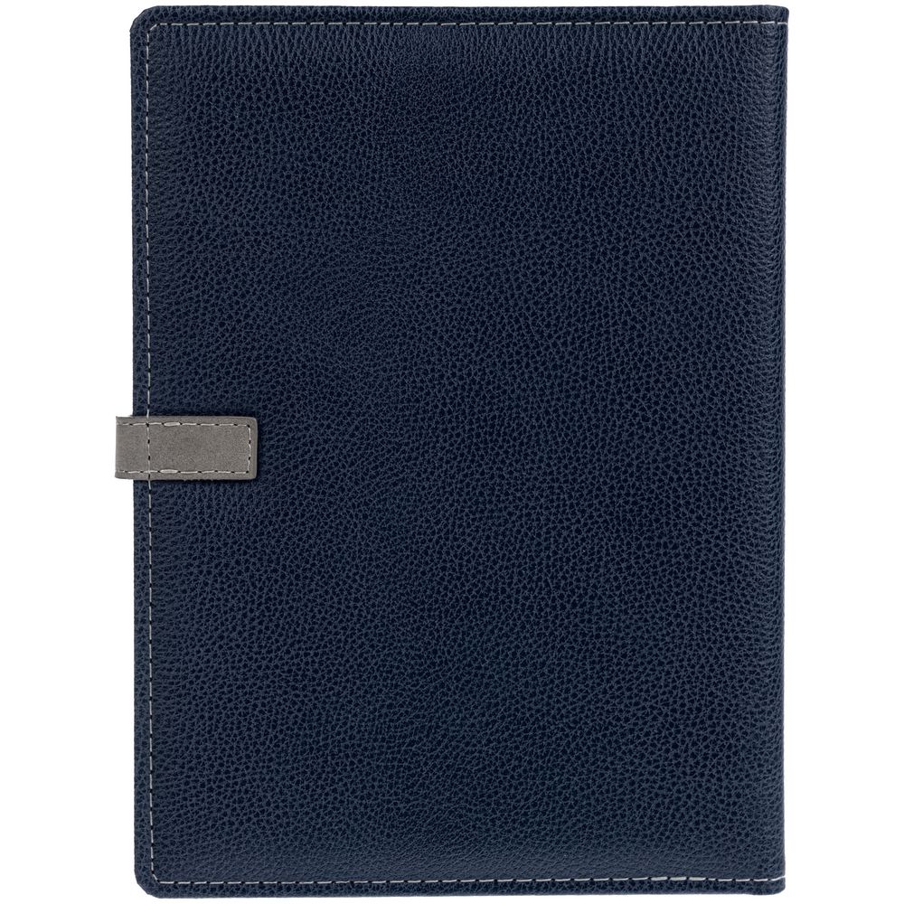 Ежедневник в мягкой суперобложке, выполнен из материала La Fite, темно-синий ХХ, дополнен ляссе серого цвета.