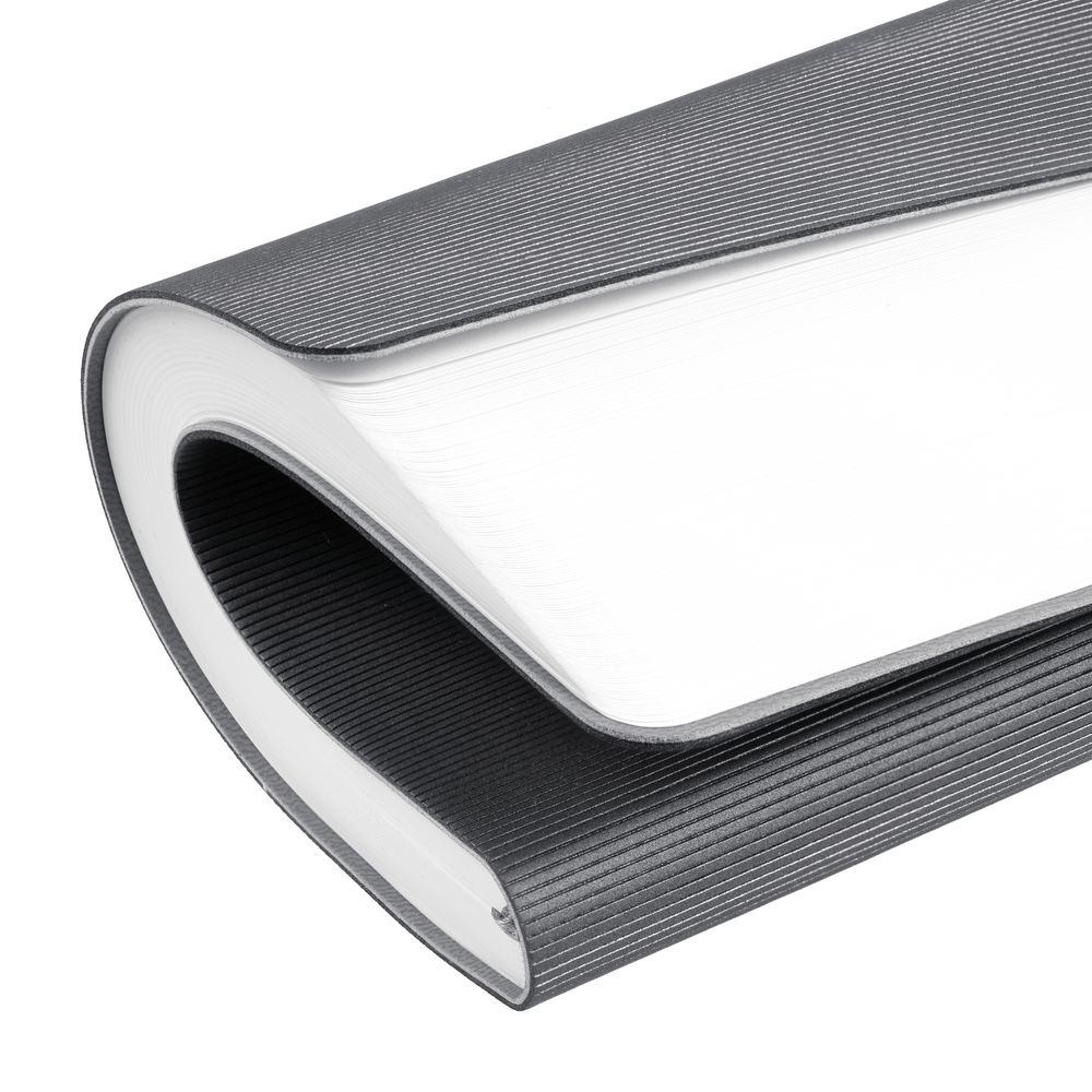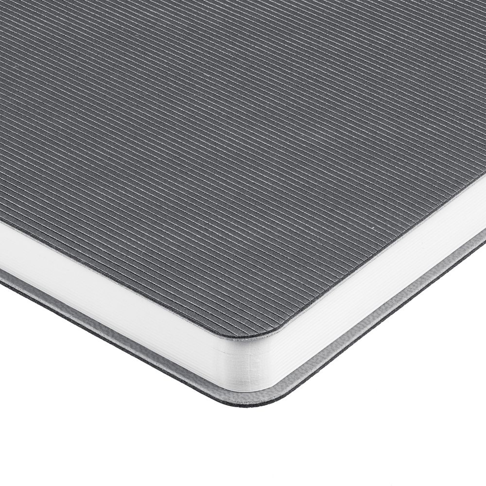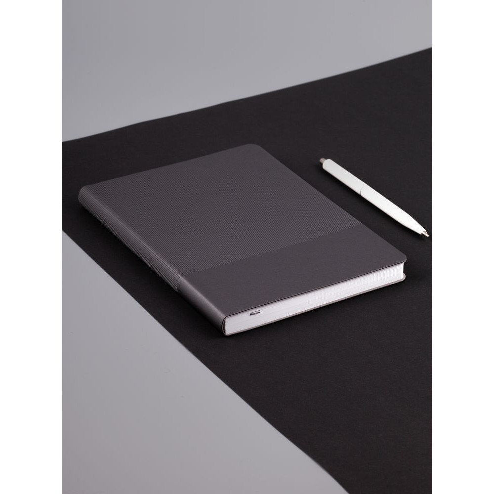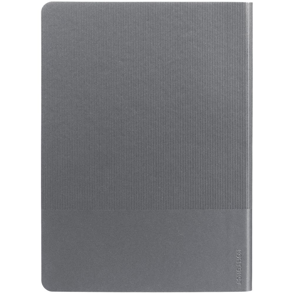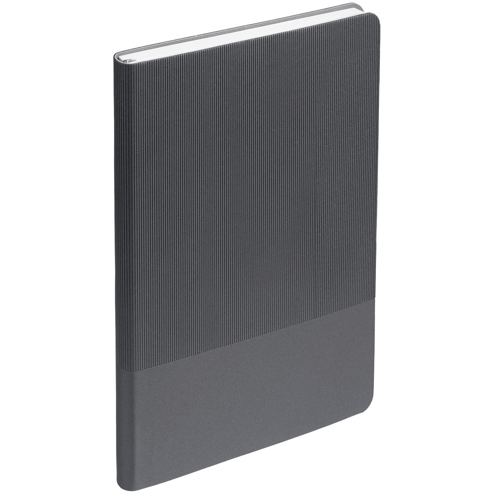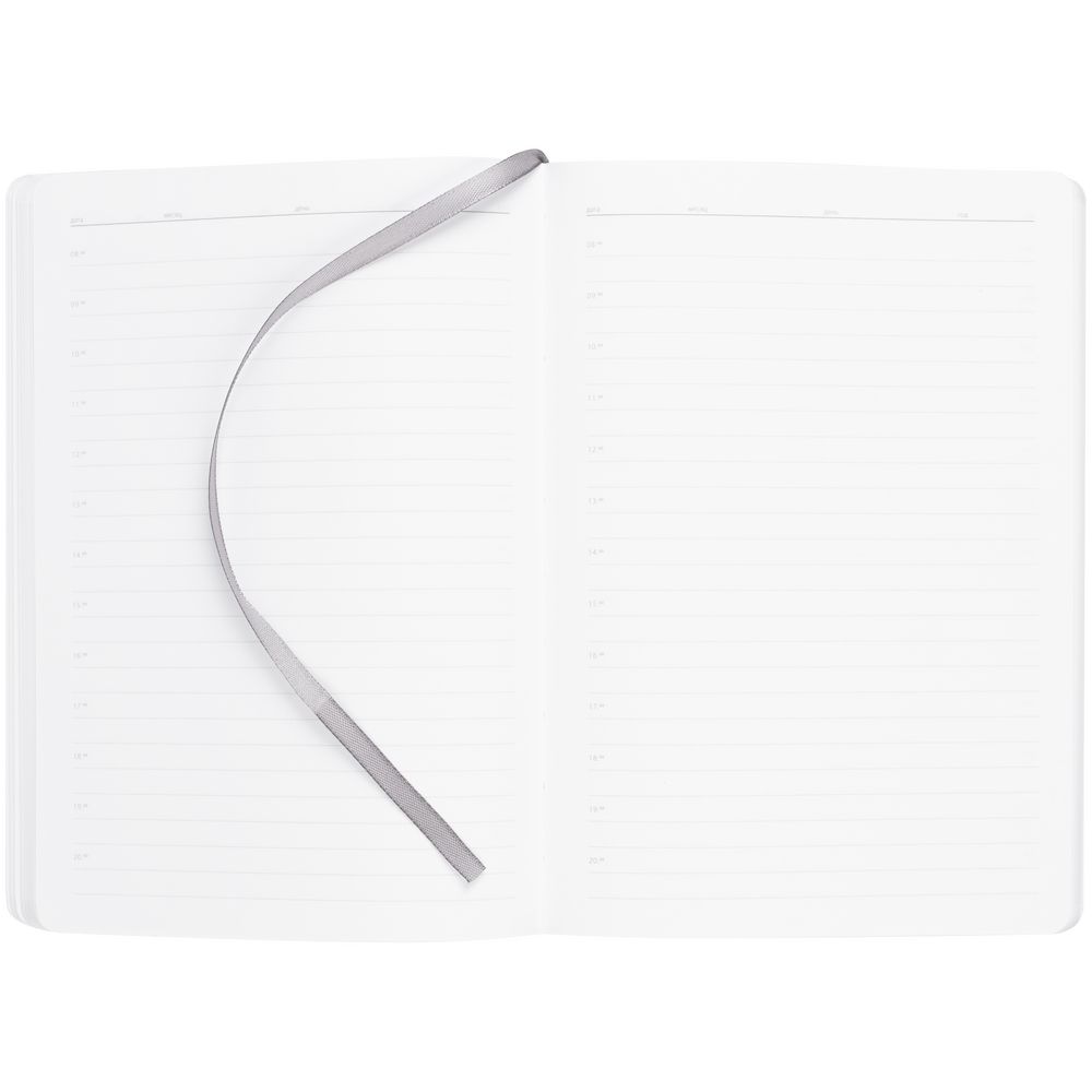 Ежедневник с гибкой обложкой выполнен из материала Soft Touch Perl, серый СС и Latte, серый (внутренний материал); дополнен ляссе серого цвета и фактурным тиснением обложки.