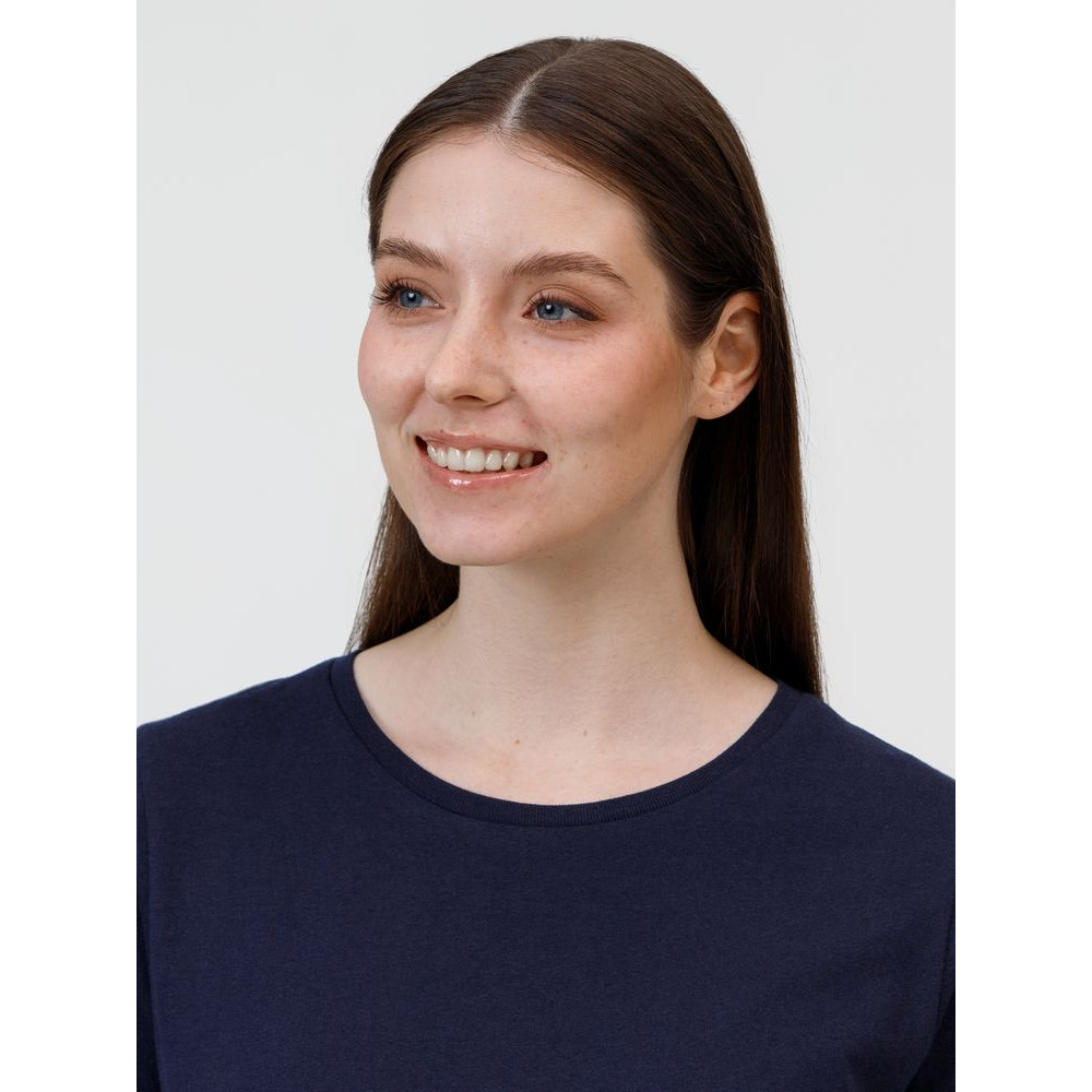 Кроеная женская футболка приталенного силуэта с круглым воротом.