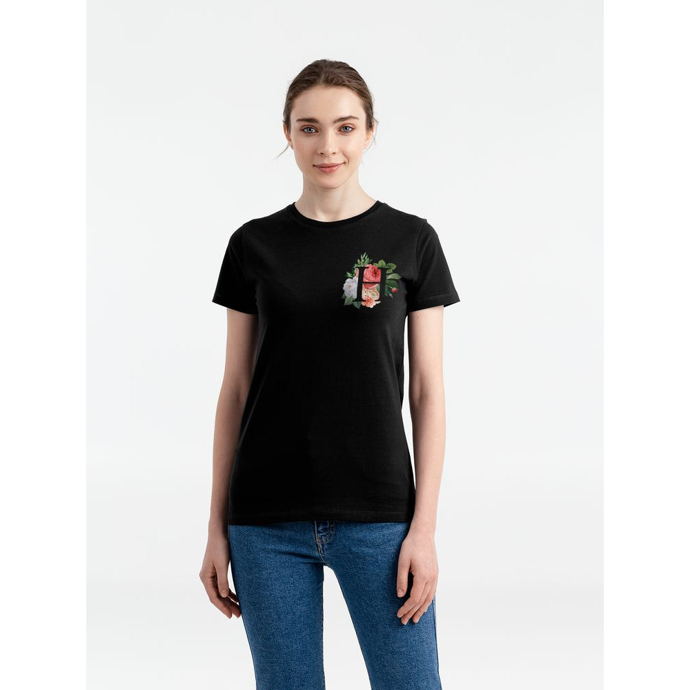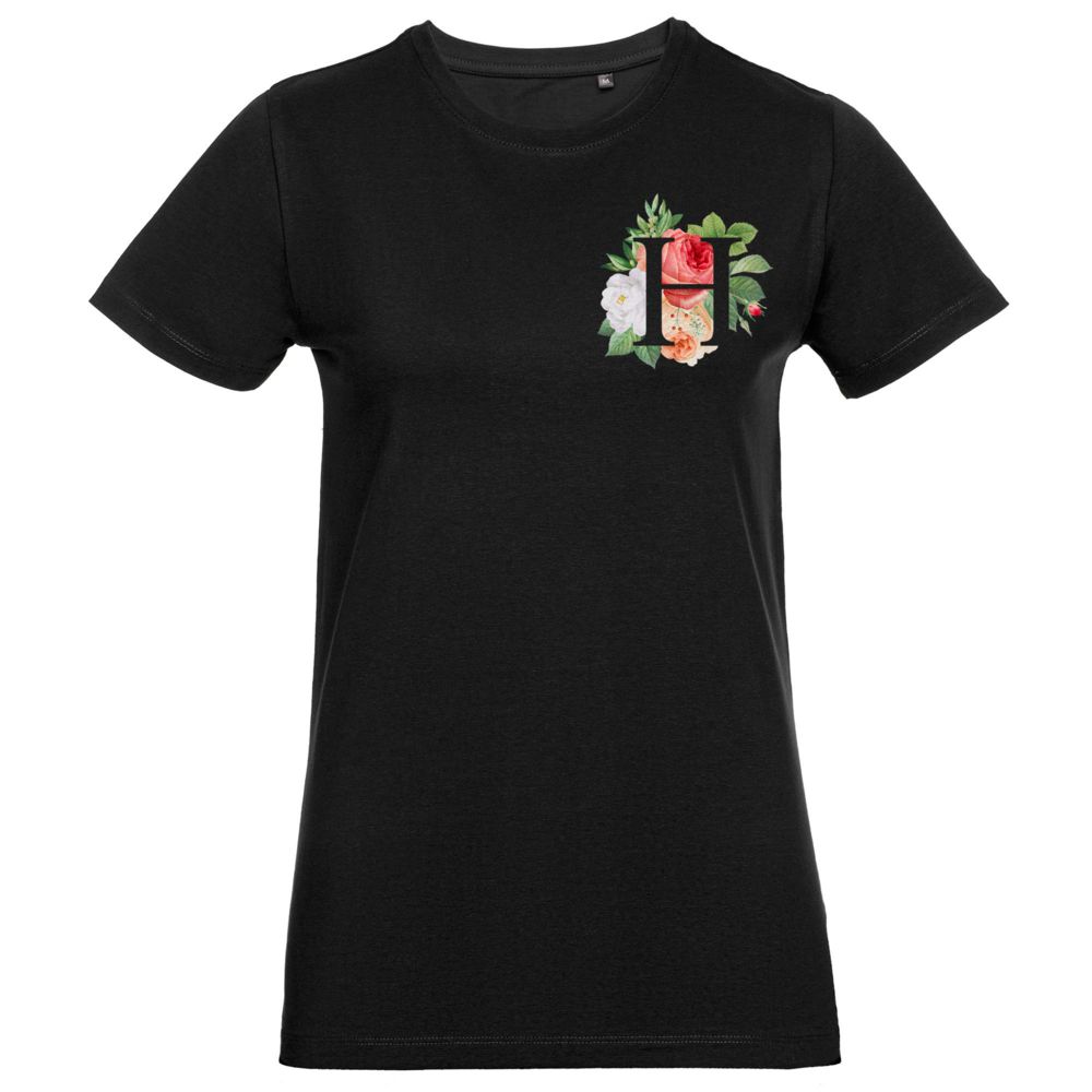Футболка женская «Цветочная азбука Н», черная