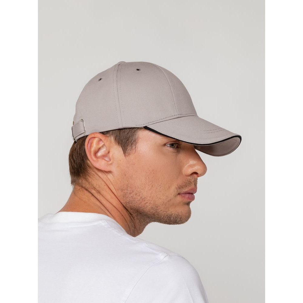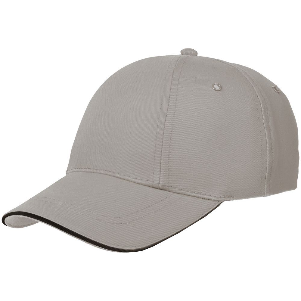 Бейсболка Canopy, серая с черным кантом