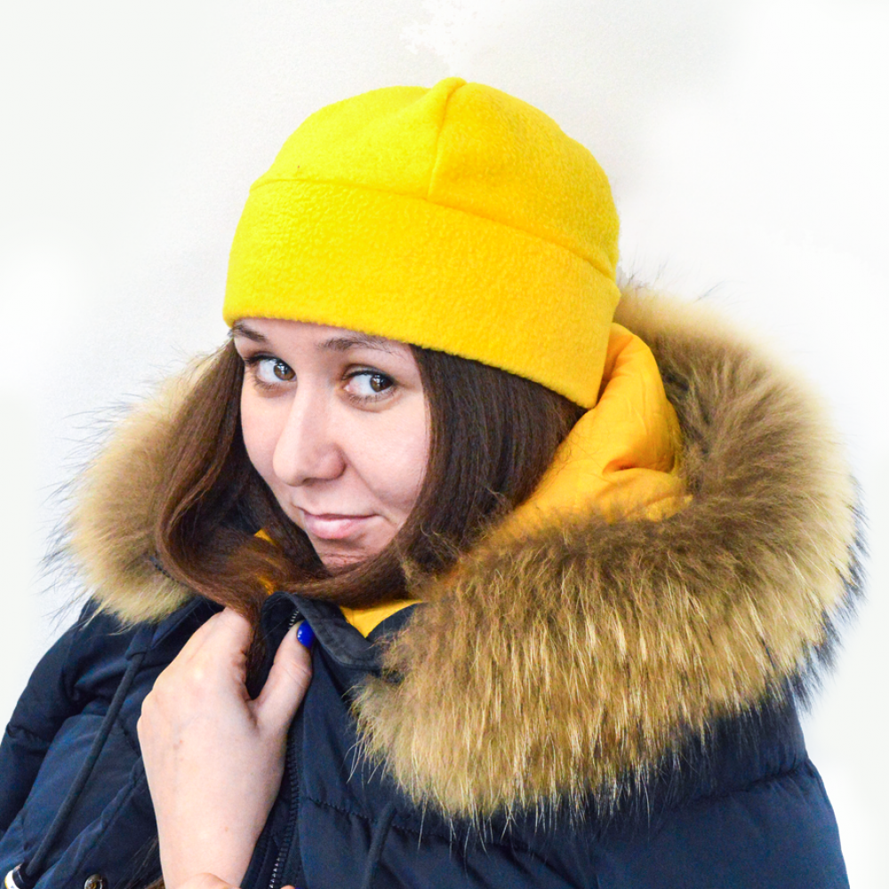 Параметры: Шапка с отворотом однотонная трикотажная двухслойная с подкладом из флиса