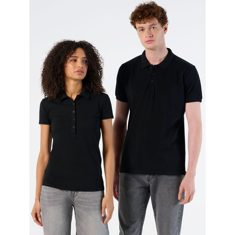 Плотная рубашка поло с эластаном. Лейбл производителя в боковом шве изнутри, в шве горловины - только бирка с размером, что позволяет вам нанести свой логотип.