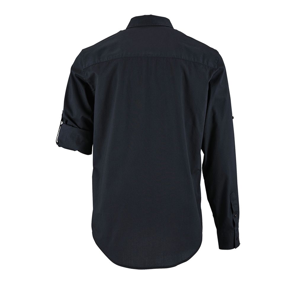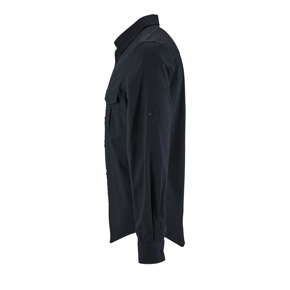 Рубашка прямого кроя в стиле «сафари» с планкой на 7 пуговиц в тон и манжетами на 1 пуговице.