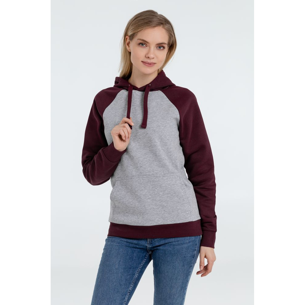 Двухцветная утепленная толстовка унисекс с рукавами реглан и карманом-кенгуру.