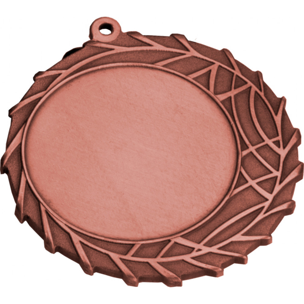 Медаль металлическая, круглой формы. Диаметр 70 мм, толщина 3 мм.¶Цвет медали, имитирующий золото/серебро/бронзу.¶Сверху расположено округлое ушко для крепления ленты.¶В центральной правой части лицевой стороны медали расположено место под вкладку, диаметр 50 мм, имеет тонкую окантовку. ¶Узор медали представлен в виде веточки, огибающей место под вкладку, концы веточек выходят за край медали. По краю медали насчитывается 20 выступов.¶На медали нет никаких других изображений, нет рисунков, относящихся к конкретному виду спорта.