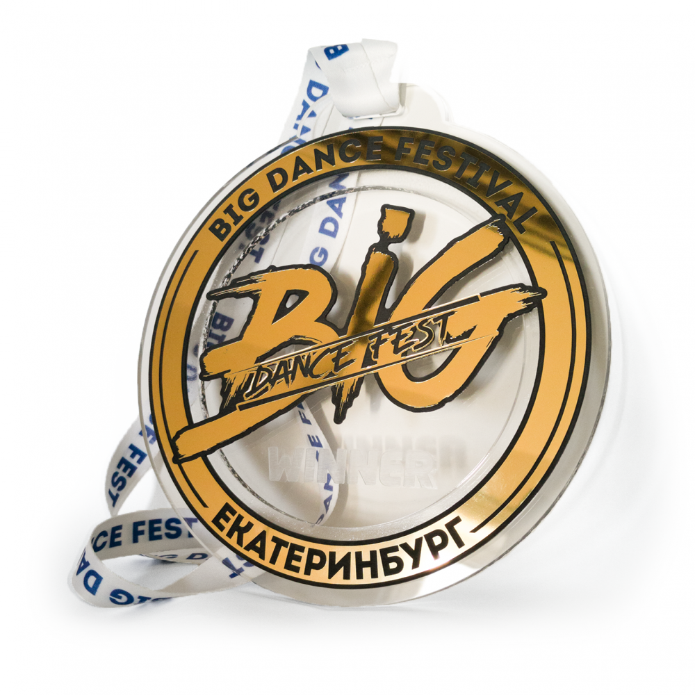 • Медаль из акрила с пластиком 3-слойная (один слой пластика)