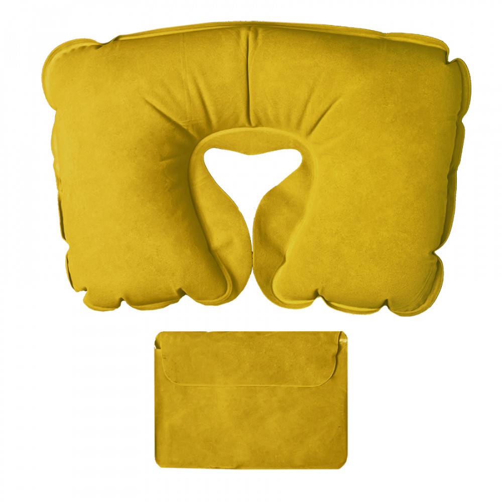 Параметры: Подушка надувная дорожная в футляре; желтый; 43,5х27,5 см; твил; шелкография
