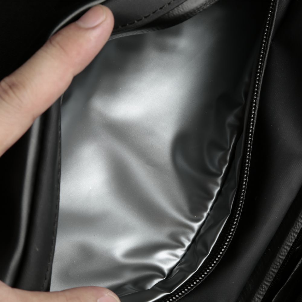 - Внешний карман с дополнительной водозащитной подкладкой для термокружки, бутылки с водой или зонта, также закрывается на водонепроницаемую молнию YKK