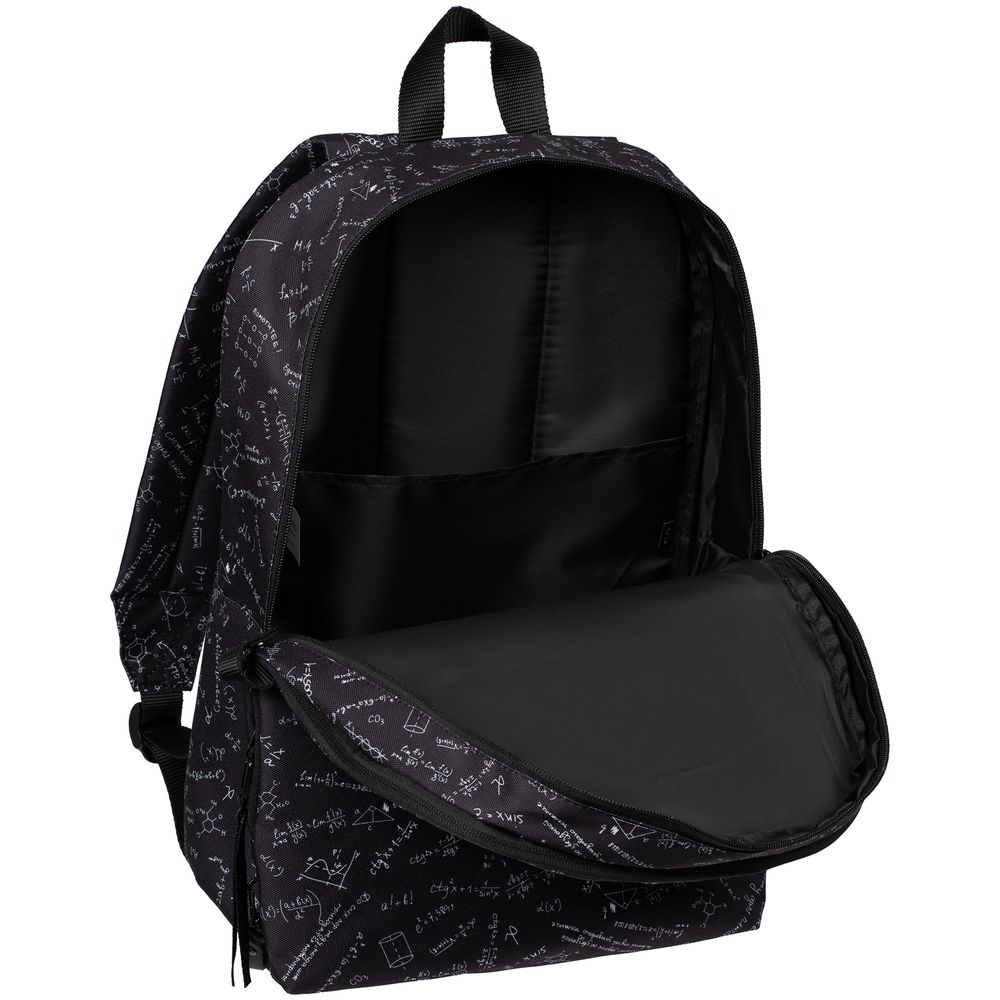 Рюкзак с девизом: «Единственное, что могу считать в математике, — считаю, что это не мое». Судя по размеру, вмещает энное количество вещей. Подтверждение этому можно находить снова и снова.