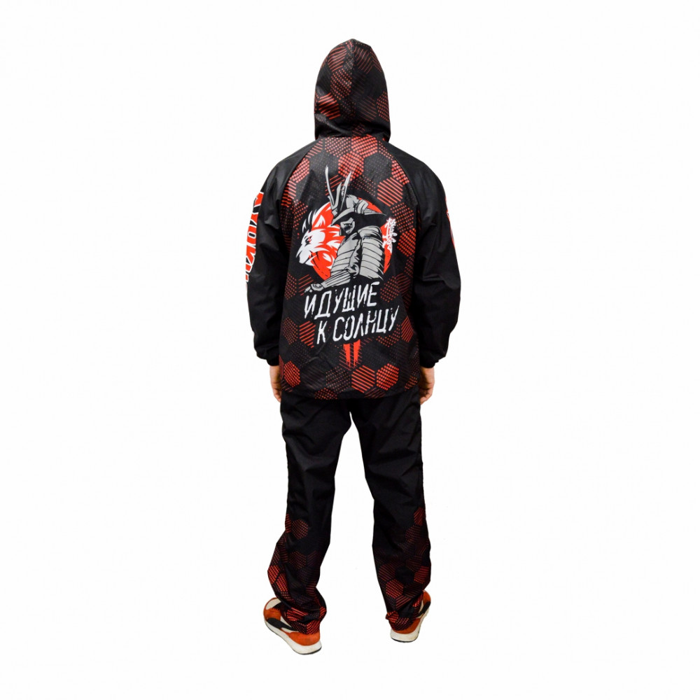 Параметры: Костюм (ветровка с капюшоном и брюки, без подклада), материал: дюспо с полной запечаткой