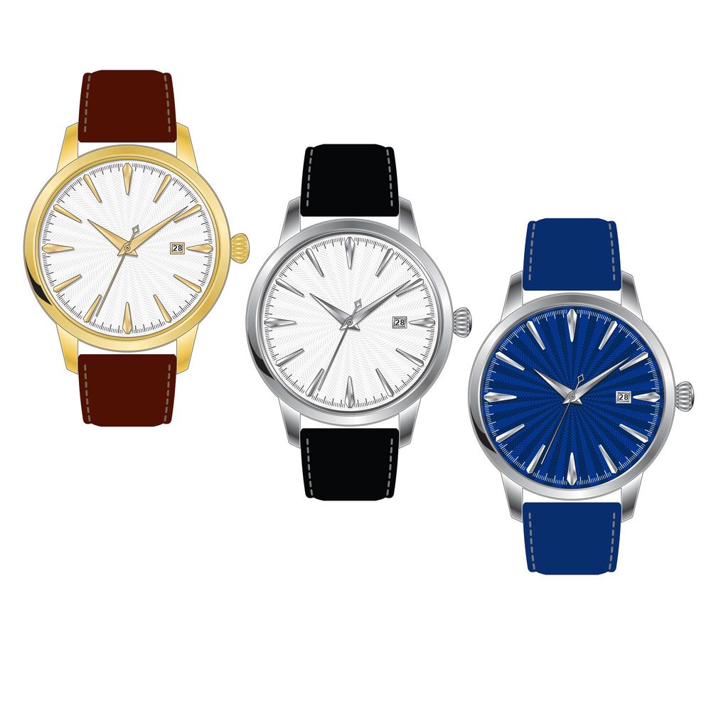 - Цвет циферблата — белый, черный, синий.