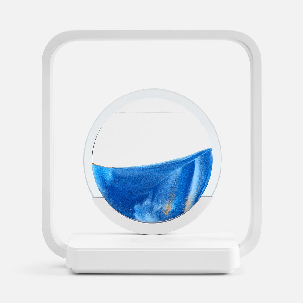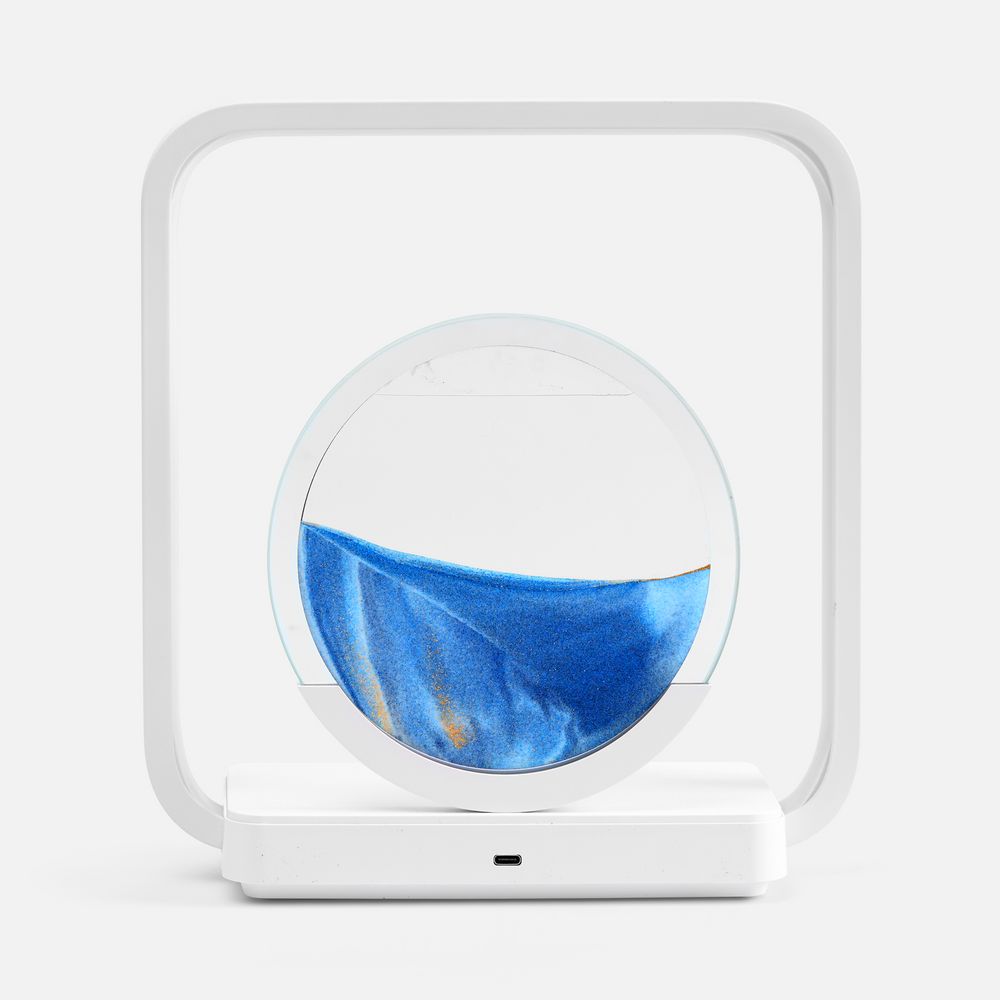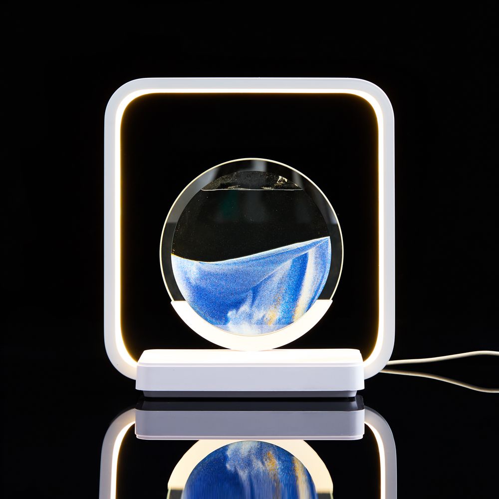 Если перевернуть круглую стеклянную вставку с песком, можно расслабленно понаблюдать  за плавным перемещением песчинок в жидкости. Такой полезный для глаз антистресс с легкостью успокоит во время напряженного рабочего дня. Регулируемая подсветка внутри рамки создает еще больший акцент на картине, превращая Sandflow в стильный точечный источник света.