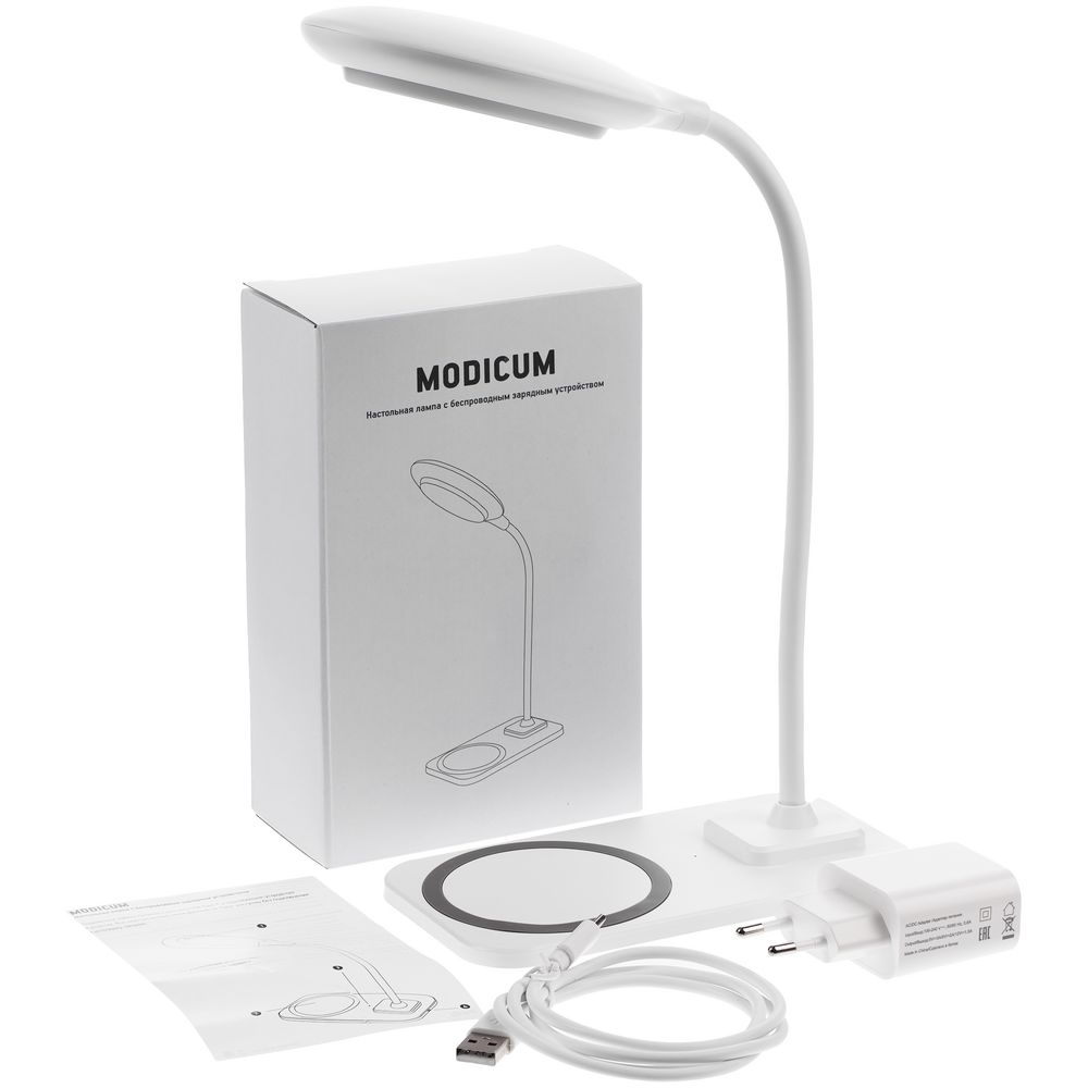 Настольная лампа с беспроводной зарядкой Modicum, белая