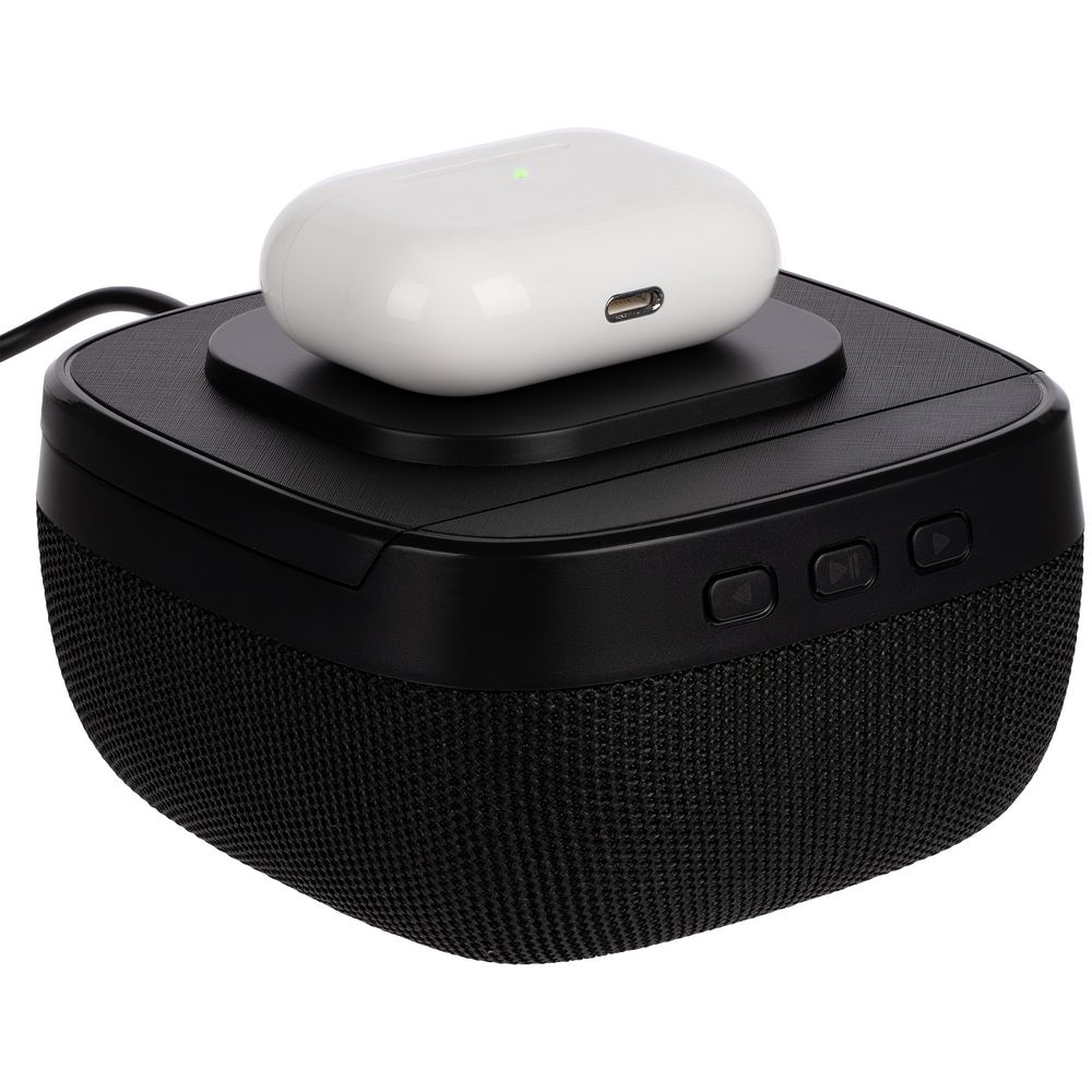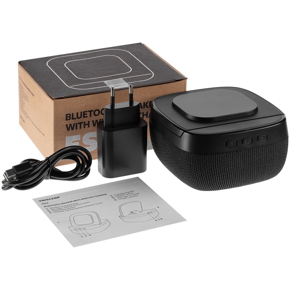 Колонка с беспроводной зарядкой Esca и подсветкой логотипа, черная