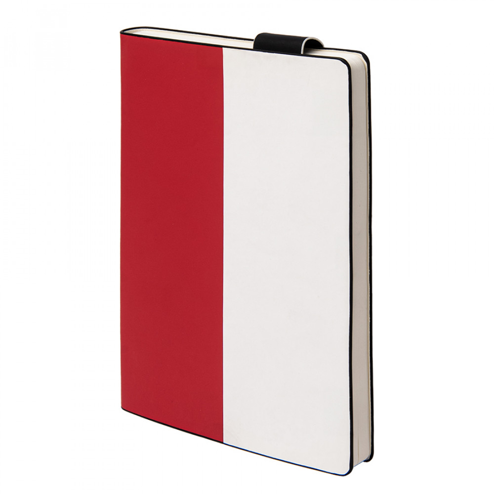Параметры: Бизнес-блокнот UNI, A5, бело-красный, мягкая обложка, в линейку, черное ляссе