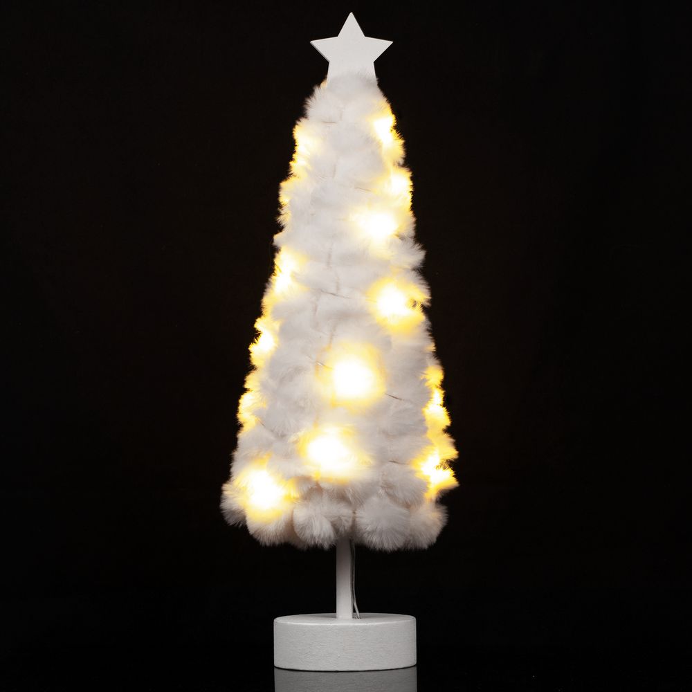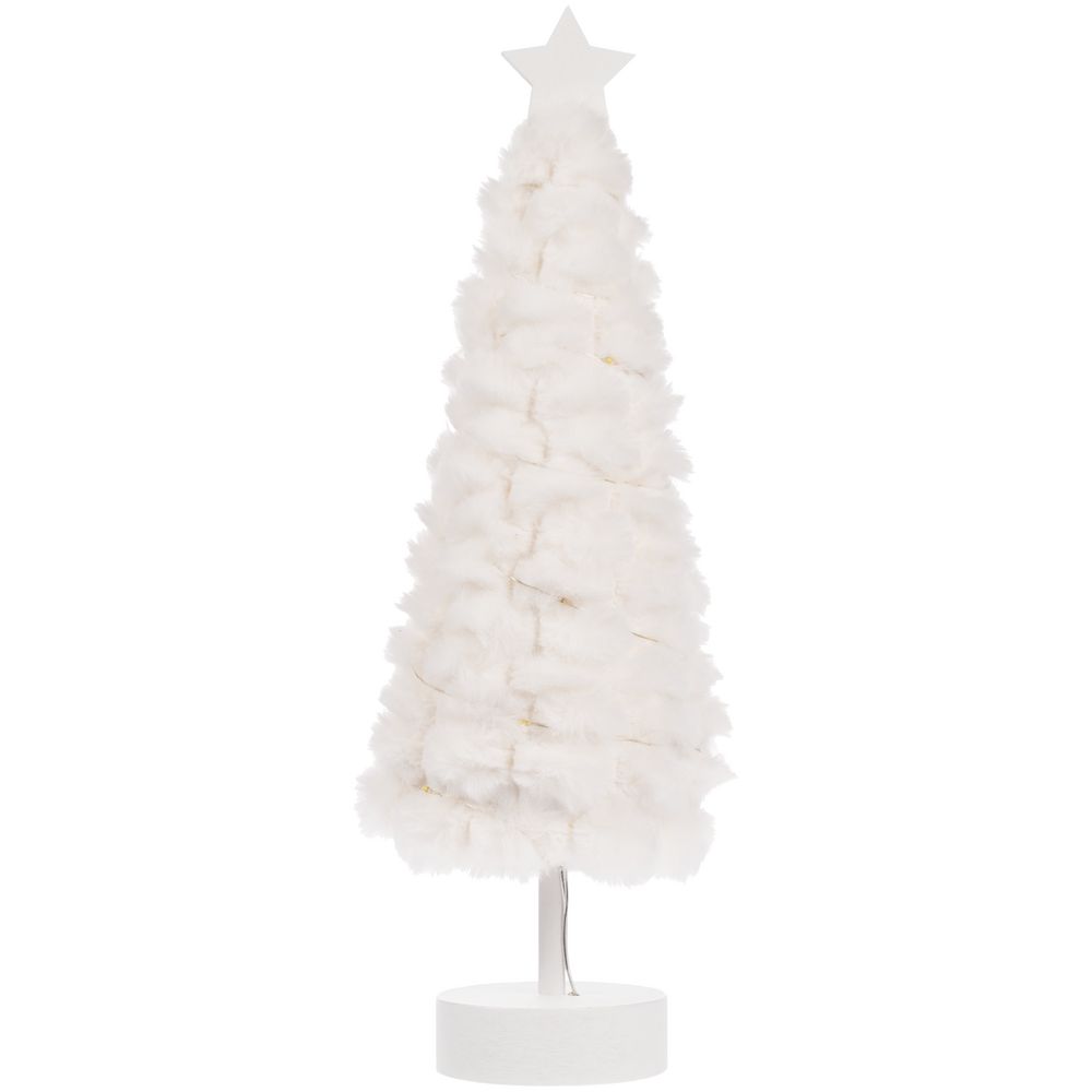Пушистая елочка с лампочками. Работает от 2 батареек ААА (в комплект не входят).
