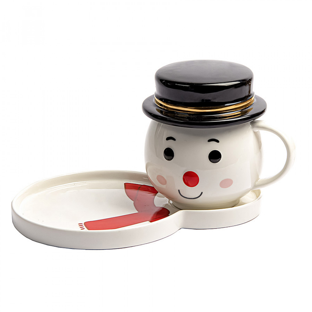 Чайная пара СНЕГОВИК с крышкой, 380мл, фарфор