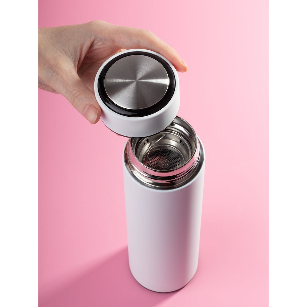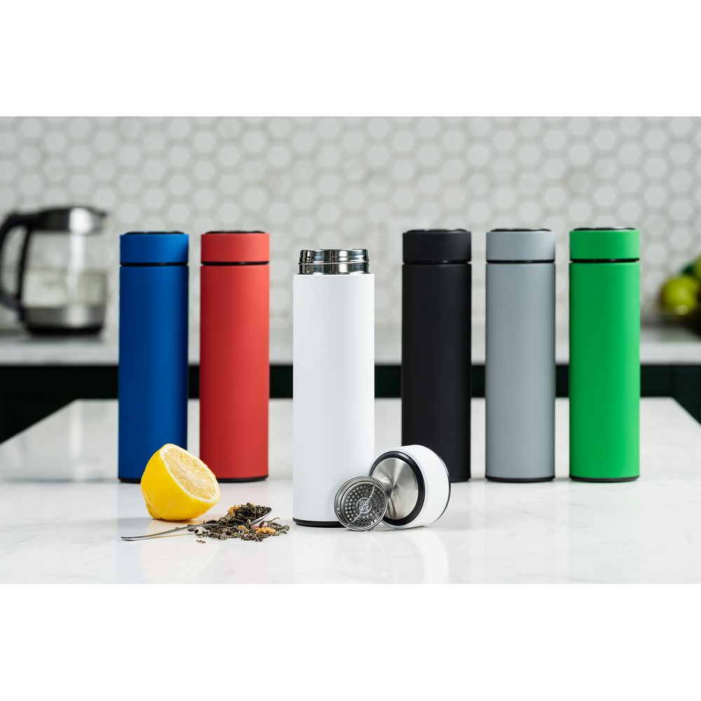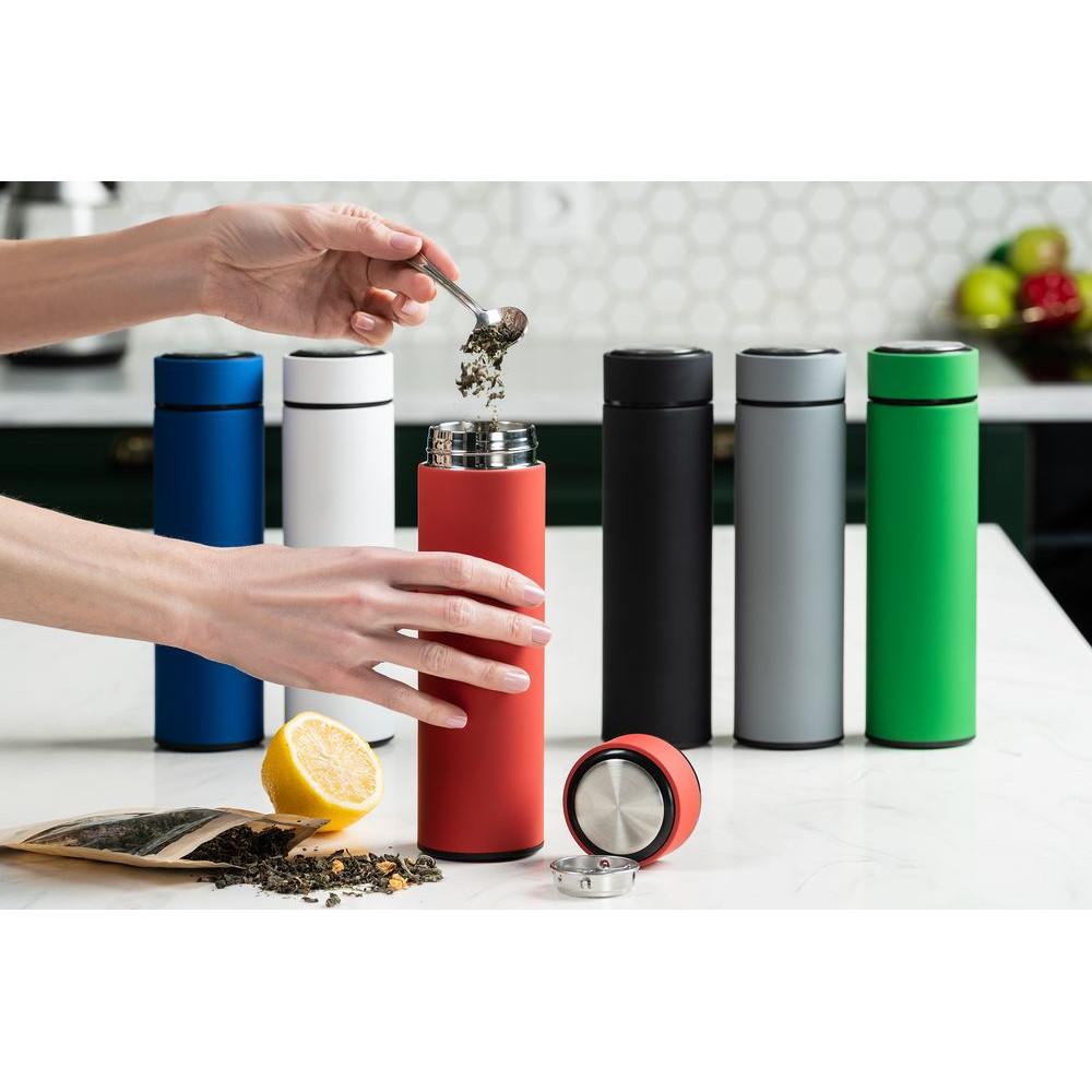 Компактный термос Percola пригодится и в городе, и на природе. Съемное ситечко поможет заварить чистую чашку чая или кофе, а цилиндрический корпус даст широкие возможности для маркетинговых сообщений.