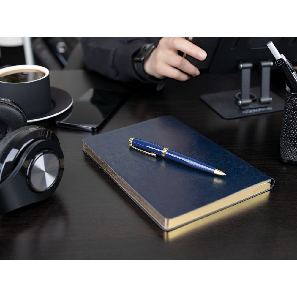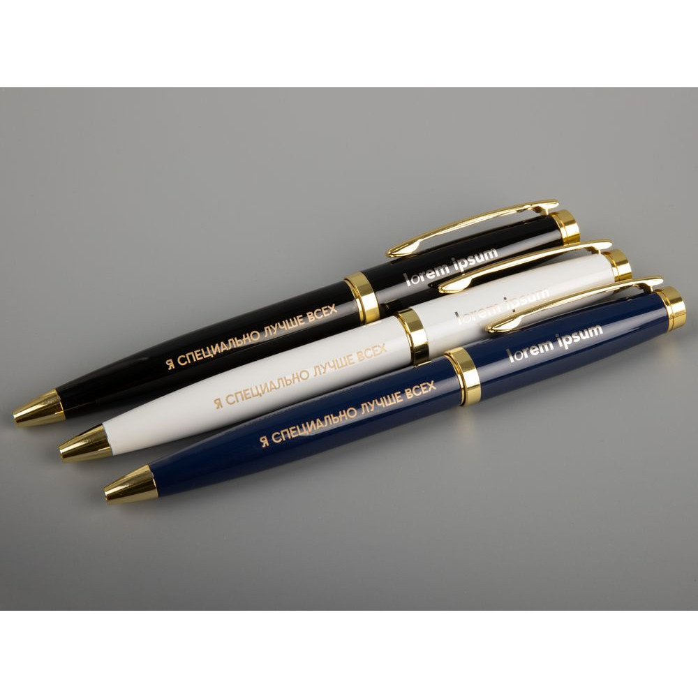 Классическая металлическая ручка с глянцевым корпусом и золотистыми деталями. Идеальный подарок для ценного сотрудника.