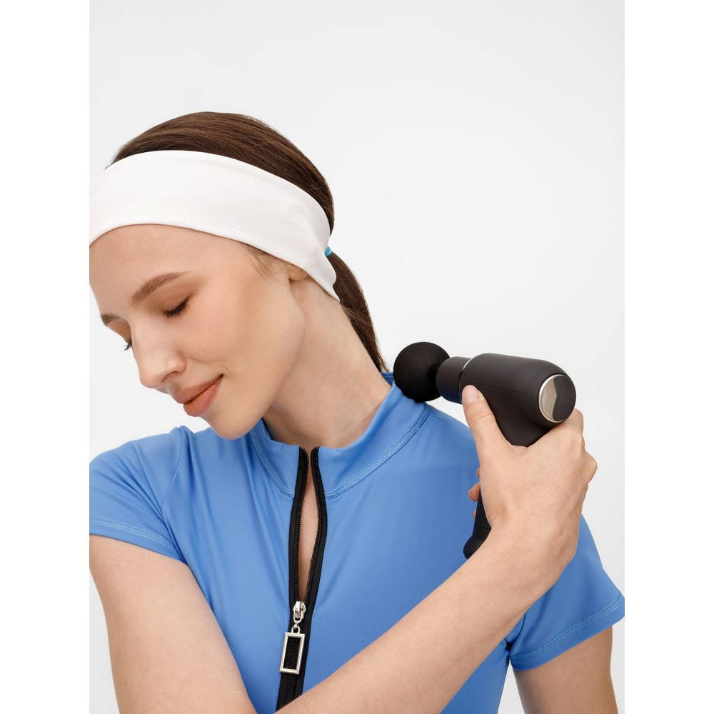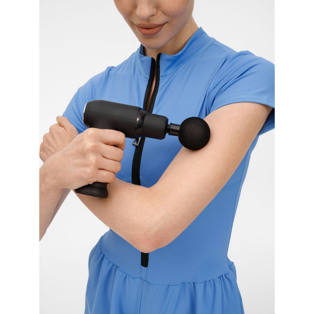 Конструкция массажера выполнена в форме мини-пистолета с тактильно приятным матовыми покрытием и эргономичной ручкой: его удобно держать и просто использовать благодаря кнопочной системе управления.