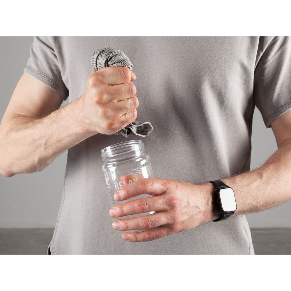 При хранении в бутылке полотенце сохранит охлаждающий эффект в течение нескольких часов. Благодаря крышке-карабину ее удобно прицепить на рюкзак или сумку.