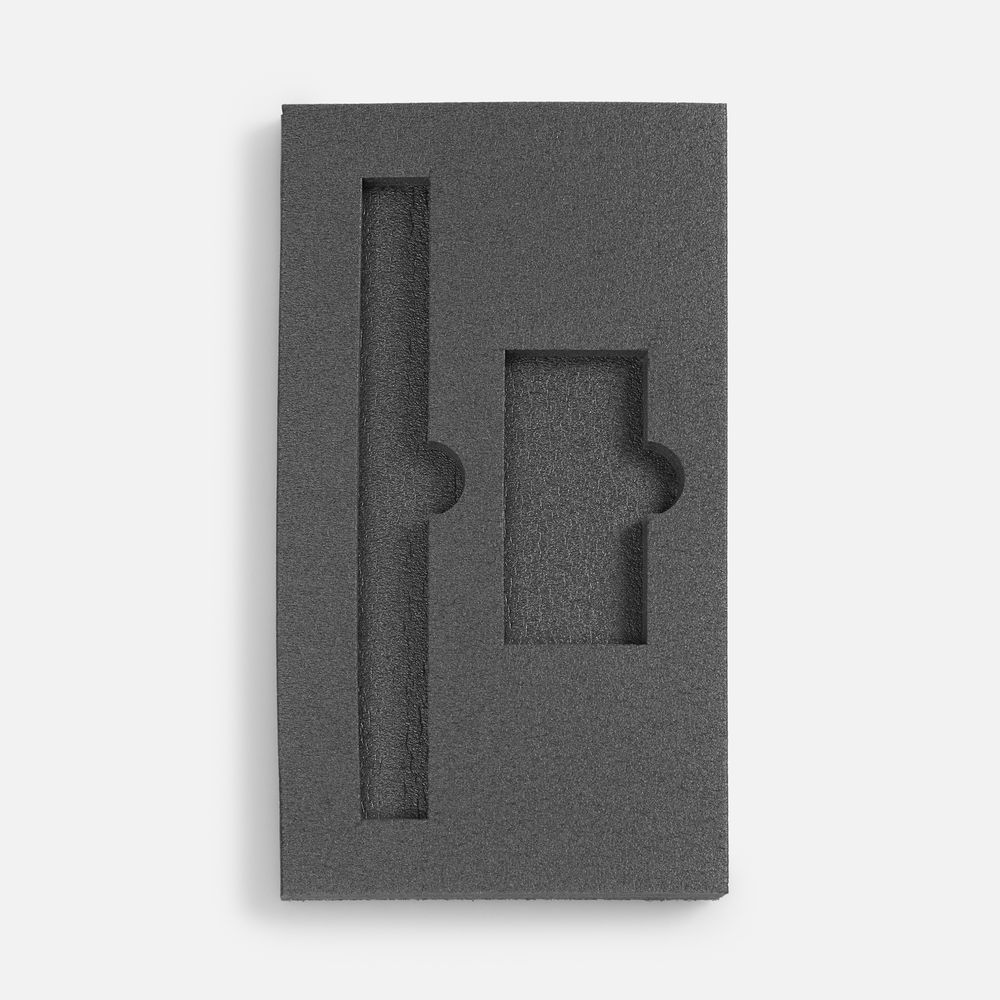 Ложемент, изготовленный из материала Izolon 500 черного цвета, представляет собой многослойную конструкцию, состоящую из нижнего слоя толщиной 5 мм и верхнего слоя толщиной 10 мм. В соответствии с утвержденным макетом, проемы для размещения предметов могут быть спроектированы как в одном, так и в обоих слоях.